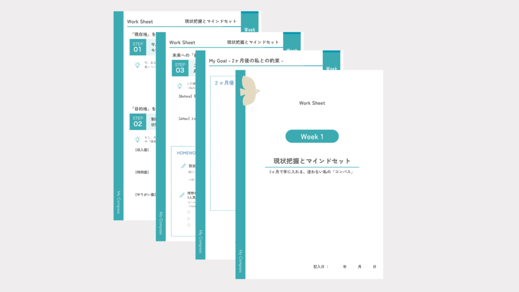 各講座には、何をすべきかが一目でわかる専用のワークシートが付属しています。動画を見て、ワークを埋めるだけで、自然とあなたの『コンパス』が完成するよう設計されています。 - 7日間で完結する、無駄のないプログラム